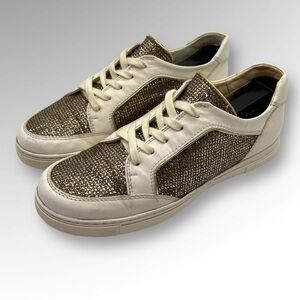Size 6 Stuart Weitzman Womens white Lace Up Low Top Athletic Sneaker. Cleaned and sanitized.