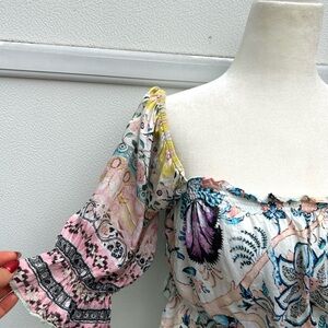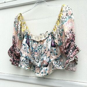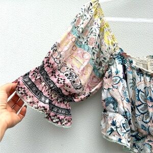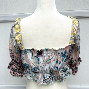 Hemant Nandita Anthropologie Women Floral Boho Top Sz M Cropped Multi Fairy