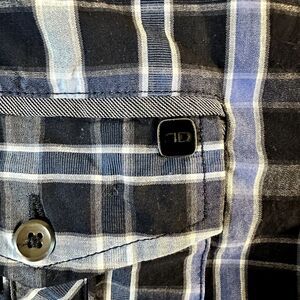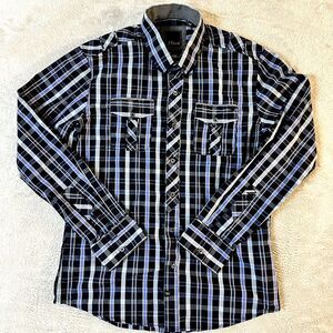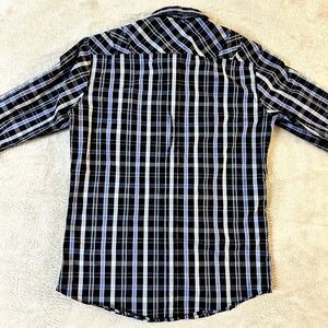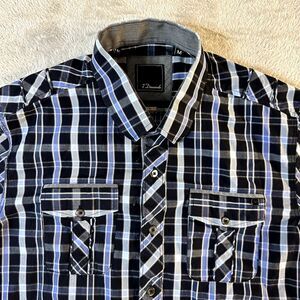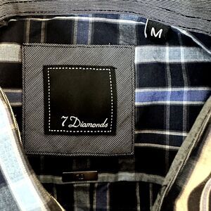 7 Diamonds Midnight Love Affair Button Down Navy Blue Plaid Men's Slim M Shirt
