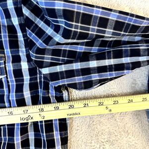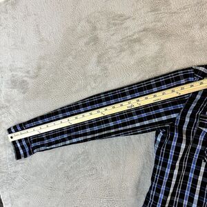 * 7 Diamonds Long Sleeve Button Down Navy Blue Plaid Men's Slim Medium Shirt - 100% Cotton