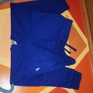 Stylish blue hoodie and pants set. Iconic Polo logo on chest and leg. Comfortable and trendy.