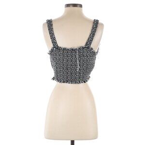 Vestique Black & White Tweed Sleeveless Sweetheart Neckline Cropped Tank Top