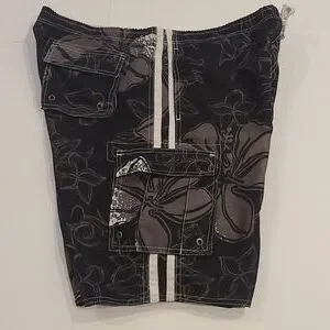 3/$20 US Apparel Black & Tan Hawaiian Print Swim Trunks