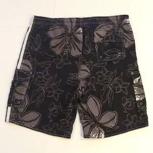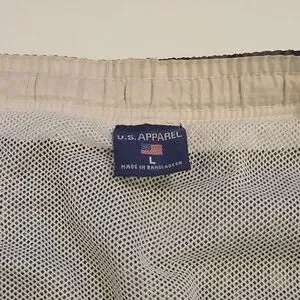 Black and tan Hawaiian design U.S. Apparel swimming trunks board shorts. Size Large. 100% Polyester. In great condition.