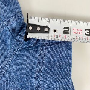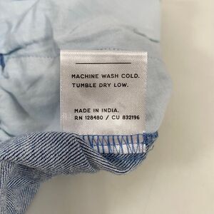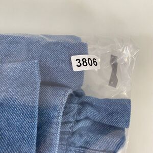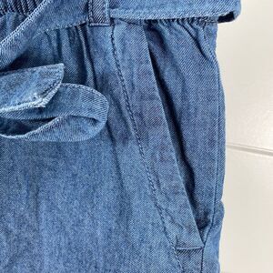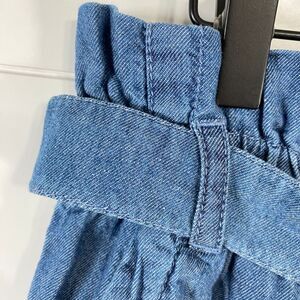 Stylish blue denim shorts. Features a tie waist. Comfortable and casual design.