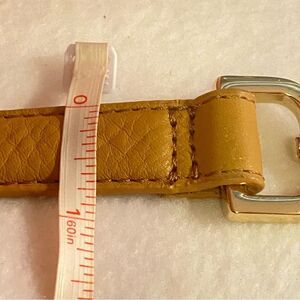 Beautiful, soft, thick, quality leather, adjustable with gold signature hardware. Neutral buttery tan color. Great crossbody replacement strap or shoulder carry. Large hooks. Longest length pictured.