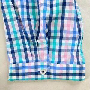 Talbots Ruffle Neck Popover Tunic Gingham Check Cotton 3/4 Sleeve (Size 16 P)