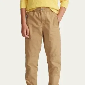 Boy's Poplin Jogger Pants with signature pony embroidery on back. Side side zip pockets. back welt pockets. Elastic waist and cuffs. Easy fit.