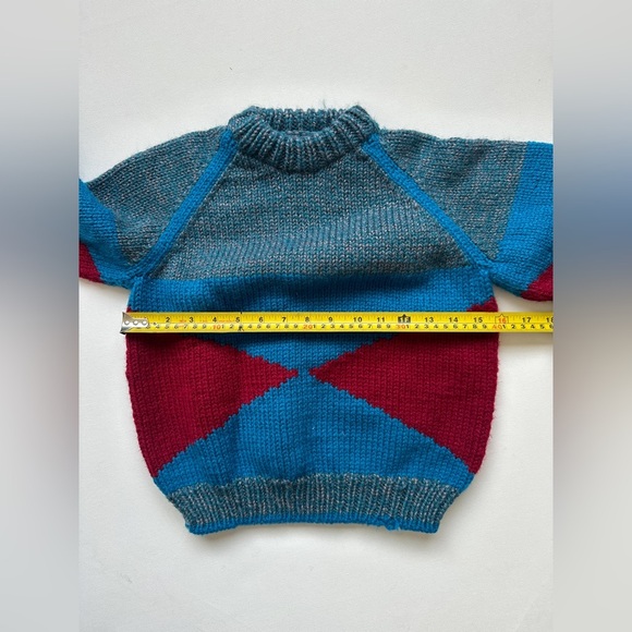 Retro Vibe Hand-knit Crewneck Sweater Blue/Burgundy - Size 3-4T