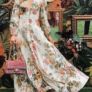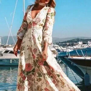 Multicolor Boho Women's Casual Elegant V-Neck Long Sleeve Floral Print Dress
