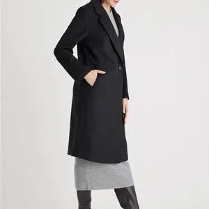 NWT, This is the one you've been waiting for. This tailored coat is made with premium Italian Melton Wool, sourced from a renowned Italian mill and known for its luxuriously smooth, felt-like texture and natural drape. The classic single-breasted design, complete with a notched lapel, single button, and pockets, offers a classic look that promises warmth—and style—all winter.