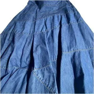 This vintage Ralph Lauren blue denim skirt in size 10 features a midi length and A-line style, perfect for a 90s-inspired look. Made from cotton denim, the skirt has a zip closure and is designed for women. The patchwork design adds a unique touch to the classic blue color, making it a stylish addition to any wardrobe.