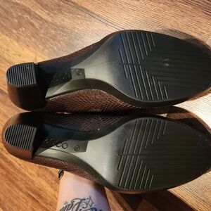 ecco Step out in style with these elegant brown textured heeled shoes. Perfect for any occasion, they offer both comfort and sophistication. Like New! European size 39, fits a US size 8