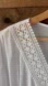 Lightweight, airy peasant-style blouse in crisp white with a relaxed fit. Features a deep V-neckline accented with floral crochet lace trim, 3/4 balloon sleeves with matching lace insets, and a gathered peplum-style waistline. Perfect with jeans and sandals for a laid-back summer look, or layered under a cardigan with boots for cooler days.