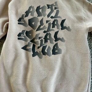 Cozy tan hoodie with front pocket. Features brand logo on chest.