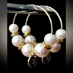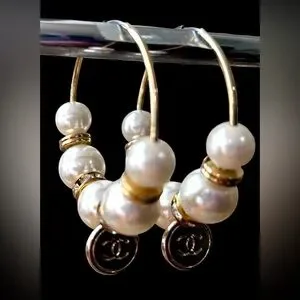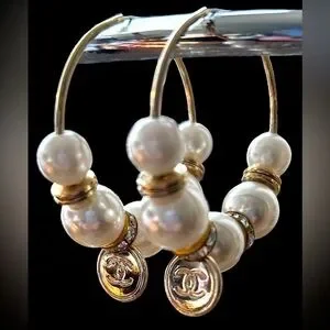 Please note: The “CC” & CZ charms/beads & faux pearls were taken from a CHANEL VIP bracelet, which I added to & strung on gold-plated hoops.