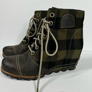 Sorel Wedge Ankle Buffalo Check Plaid PDX Boots Green Black Booties Size 11
