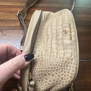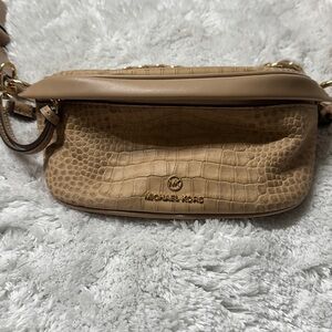 Stylish Michael Kors crossbody with crocodile texture. Elegant gold chain detail. Perfect for any outing.