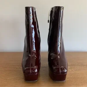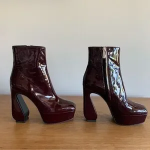 NWT!! Sergio Rossi Burgundy Platform Patent Leather Boots SZ 37