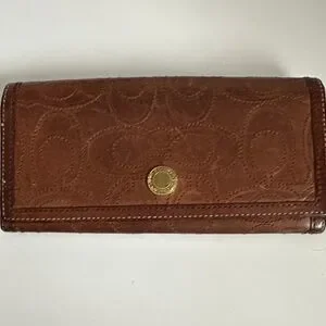 Coach Tan Embossed Leather Wallet with Gold Accent