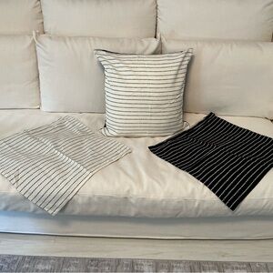 EUC 100% cotton throw pillow replacement covers from H & M. Medium weight cotton. Reversible - one side is black w/white dots, the other side is white w/black dots. Zippered top enclosure. Fits a 17” insert with room to spare.