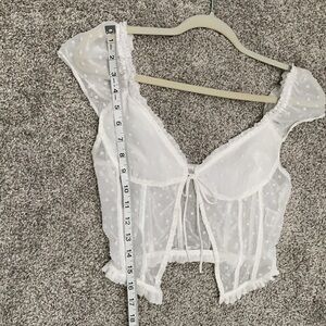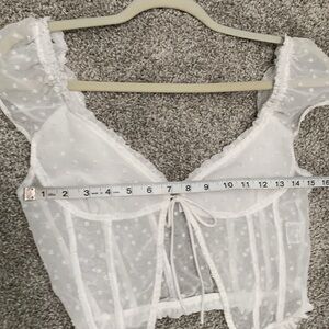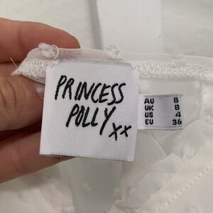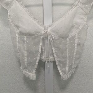 Princess Polly Vaccaro White Swiss Dot Tie Front Cropped Top