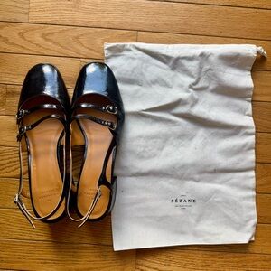 Sezane Paula Babies Mary Jane Slingbacks Black Patent Leather size 11