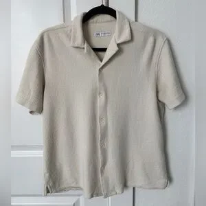 Stylish beige shirt with short sleeves. Ideal for casual outings. Soft fabric for comfort. In excellent condition