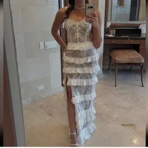 V. Chapman White Lace Gown