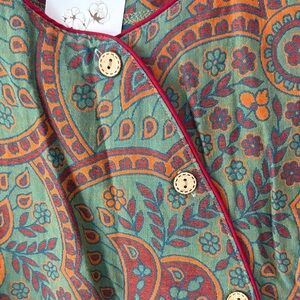 Stylish paisley pajama set. Features a button-up top and matching pants. Comfortable and chic design. All cotton. Size says XL but closer to a medium 8-10.