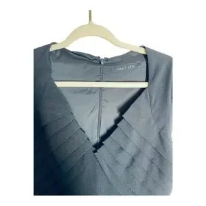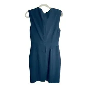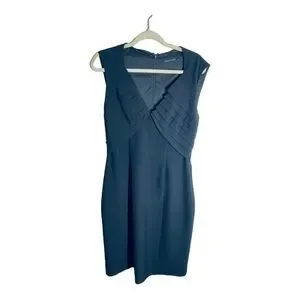 Black Halo black sleeveless sheath dress. Unique pleated detail make this dress really stand out. Knee length, perfect for career wear or a cocktail dress. Size 8.