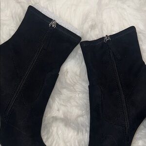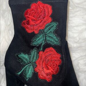 Elegant black boots with striking red rose embroidery. Perfect for a bold fashion statement.