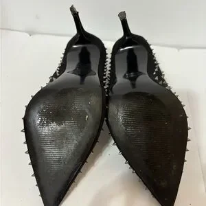 Bold black heels with striking silver spikes. Perfect for adding edge to any outfit. Little damage on one heel.