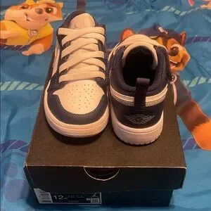 Classic Jordan sneakers for kids. Navy and white design. Ideal for daily adventures.