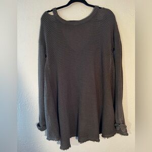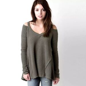 Free People Cold Shoulder Green Waffle Knit Raw Hem Oversized Top Size M