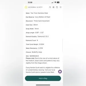 Meet your newest addition to your fine jewelry wrist stack, the Dira Two Tone Stainless Steel 38mm Diamond Dial Watch in Ivory Mother-of-Pearl. With our signature medallion shape etched into the dial and sparkling diamond markers, this beautifully bold design will soon become a treasured favorite. We have taken steps to ensure that, when applicable, our diamonds are conflict free by requiring our suppliers to comply with the Kimberley Process.