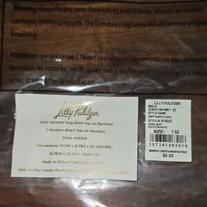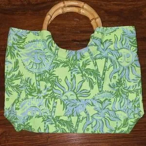 Lilly Pulitzer Handbag with Bamboo Handles (GWP); Medium size, 9.5"Lx9"Hx2"W; zip closure with faux leather pull; inside zip pocket 5"x5"; Catch'in Rays print on canvas like cotton/woven; NEW; out of package for photos; in smoke free home; in home with dogs;