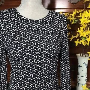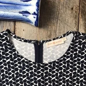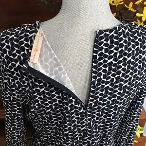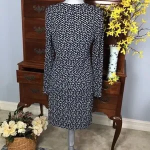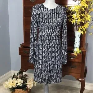 Tory Burch Geometric Long Sleeve Navy Sheath Dress Size Medium