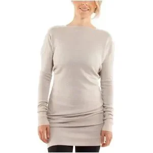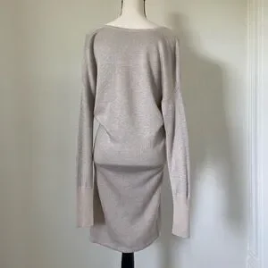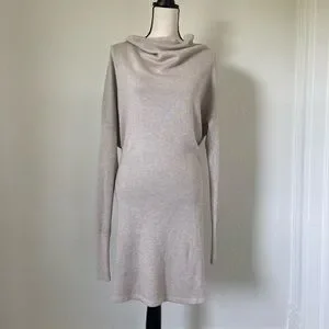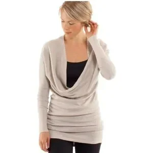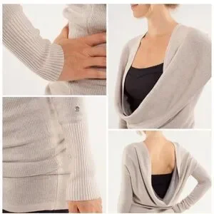 Lululemon Serenity Sweater Wrap Heathered Cashew / Coal dress, size 10 Features: - Long sleeved - Very versatile! Wear it as a dress, tunic, sweater, or shrug - Cowl neck (or turn the dress around for a beautiful drapey open back instead) - It's reversible - double the fun - Great for travel! Lightweight overall & easy to pack - Made with soft, cozy Boolux yarn, which blends Viscose from bamboo with TENCEL® and cashmere for added warmth Fit: body-skimming Note: no hang tag but measurements are for a size 10 in Lululemon. Great condition overall.