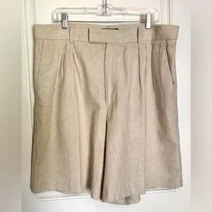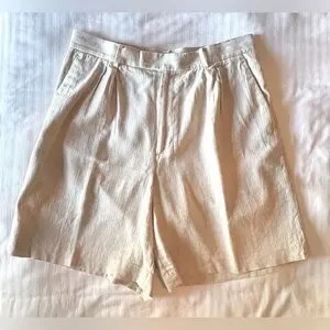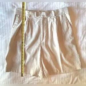 Linen blend herringbone Natural color Waist 18” Waist to hem 23” Inseam 8.5”