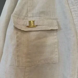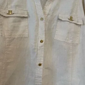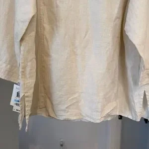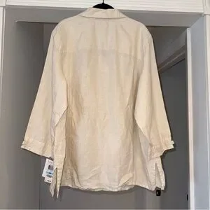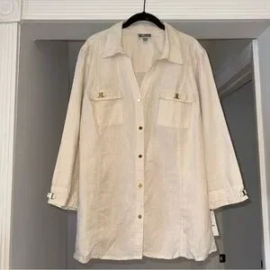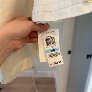 JM Collection 100% Linen Cream Gold Button Down Long Sleeve Blouse Sz 20W NWT