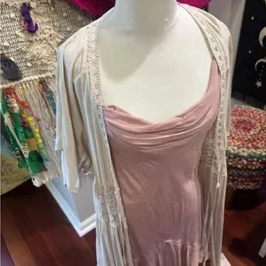 Chic pink slip dress with delicate straps. Perfect for a stylish look.