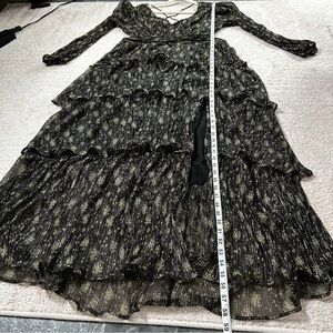NWT ASTR The Label Black Floral Long Sleeve Maxi Dress Tiered Ruffle Low Back XL