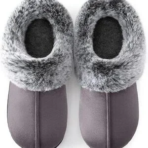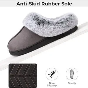 Women's Moccasins Faux Fur Trim Memory Foam Slippers(Dark Gray)