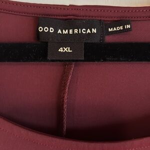 Good American, FX, maxi burgundy dress in nylon and spandex blend. Back slip, twisted shoulder design.