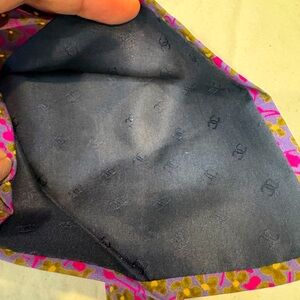 Stylish CHANEL tie with a beautiful and vibrant purple and green floral pattern. Perfect for formal events. Ni flaws and in perfect condition.