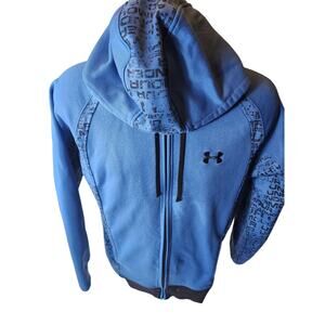 Under Armour Hoodie Mens Small Womens Medium Blue Full Zip Sweatshirt Logo Print Athletic Jacket Athletic Sportswear Gymwear Drawstring