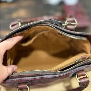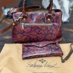 Has detachable crossbody strap, gently used bag, very little wear. Rare pattern, real leather bag with matching clutch wallet and dust bag. Non-Smoker