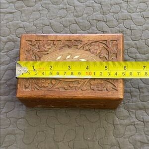 Beautiful handcrafted wooden jewelry box with intricate floral carvings. Perfect for storing small treasures.