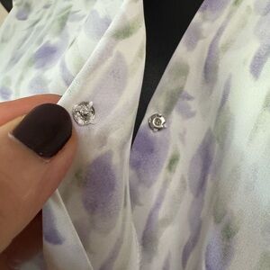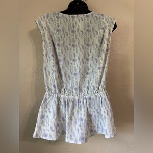 Chic sleeveless blouse with a lavender and white pattern. Stylish wrap design. Ideal for versatile wear.
